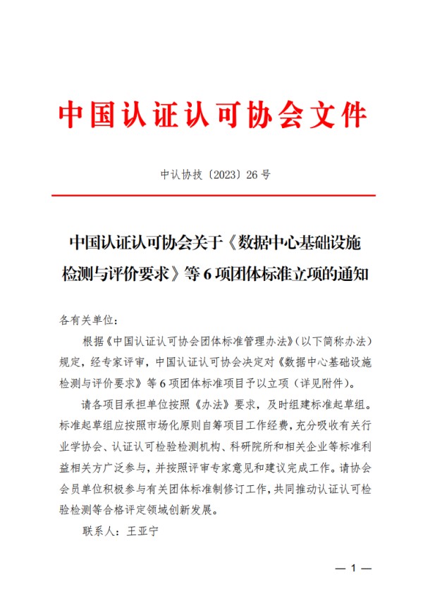 《中国认证认可协会关于<数据中心基础设施检测与评价要求>等6项团体标准立项的通知》