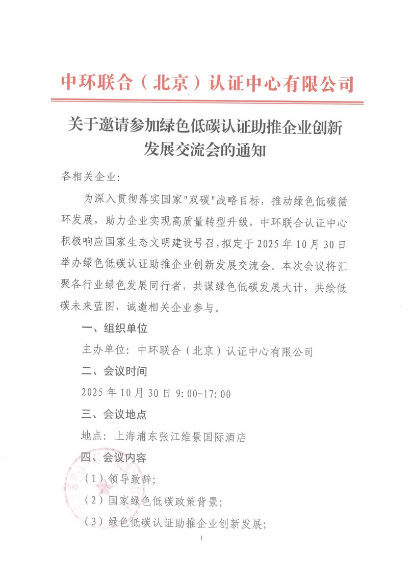 关于邀请参加绿色低碳认证助推企业创新发展交流会的通知
